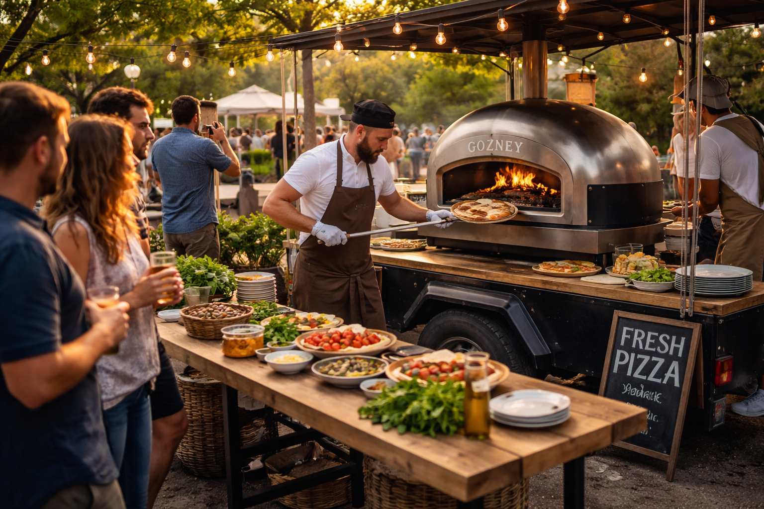 Des pizzas artisanales préparées sur place, buffet apéro dînatoire, et authentique ambiance italienne pour tous vos événements en région lyonnaise.