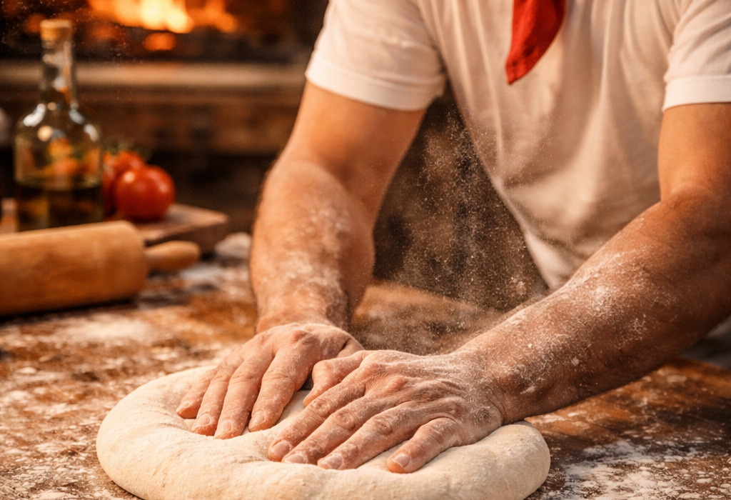 Pizzas préparées sous vos yeux dans la plus pure tradition napolitaine.